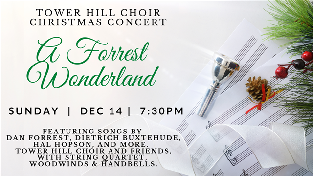 Join us for the Tower Hill Choir Christmas Concert "A Forrest Wonderland" featuring songs by Dan Forrest, Dietrich Buxtehude, Hal Hopson, and more. Enjoy the Tower Hill Choir and friends, with String Quartet, woodwinds and handbells. Get your Christmas spirit soaring at this beautiful musical event!