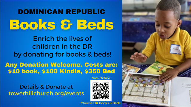 Online donations can be made by choosing the "DR Books & Beds" fund at the button below. Check donations can be sent via mail or dropped in the Giving Drop Boxes in the church lobby with "DR Books & Beds" on the Memo line.