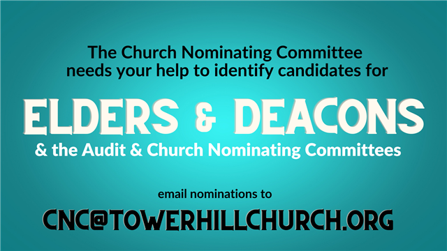 Our Church Nomination Committee is working hard to find our next Deacons and Elders! Know someone who you think would be great or want to nominate yourself? Email the CNC below!